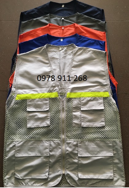 * Áo gile chất liệu lưới bền đẹp may pha với vải kaki Nam Định , kiểu dáng gọn phù hợp với công nhân công trường, nhà máy. Sản phẩm sử dụng đảm bảo thoáng, mát và tiện dụng và được thiết kế có 4 túi đựng đồ, khuyu bấm và séc mơ tuya.